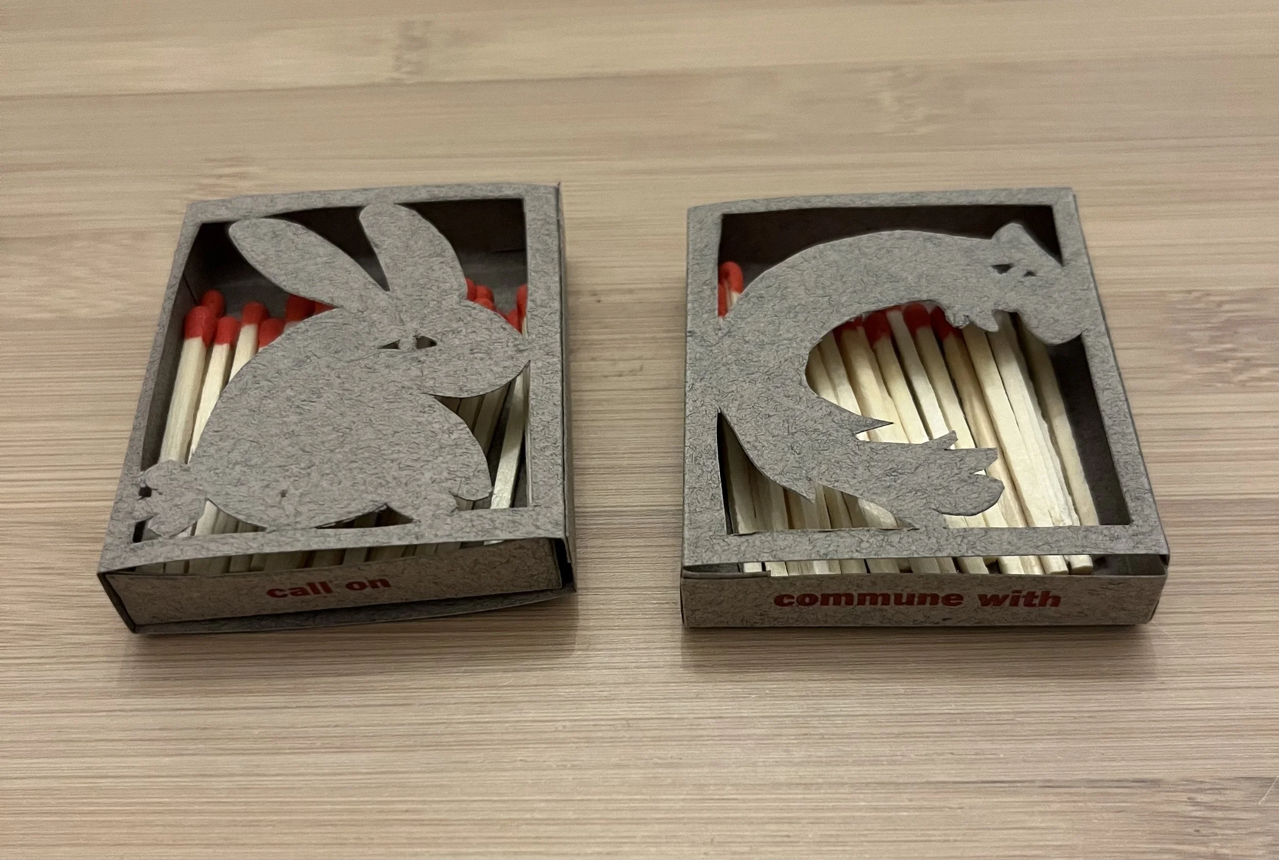 These matchboxes are inspired by folklore and superstitions surrounding the rabbit and the fox.